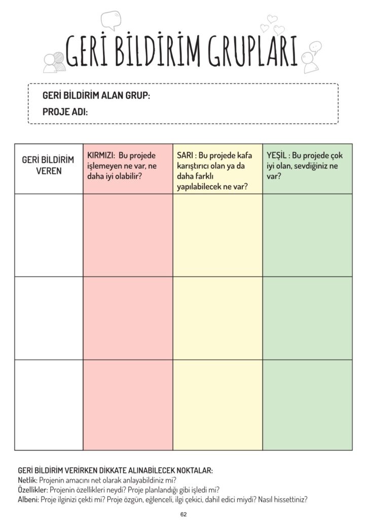 Geri Bildirim Grupları projeniz ile ilgili dönütleri form üzerine yazdıktan sonra formu size