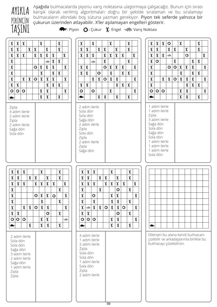 bölümlerin altlarında verilmiştir. Öğrencilerin bu algoritmaları deneyerek hatalarını gidermelerini ve