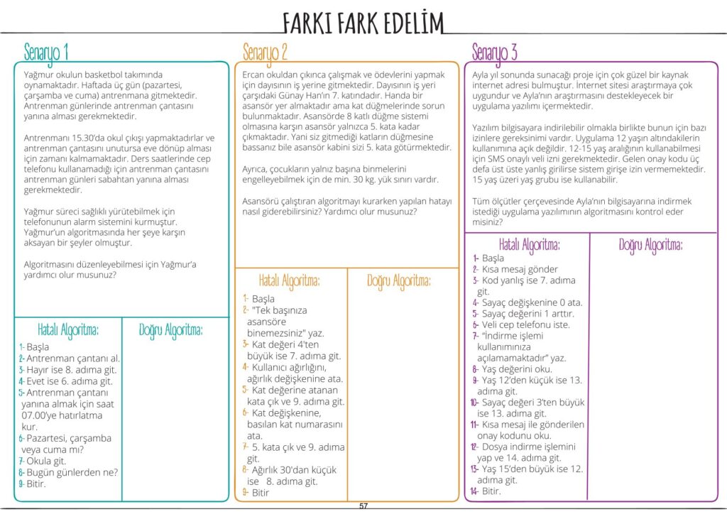 Sevgili öğrenciler hatalı olarak hazırlanan akış şemalarındaki hataları akış şemasının senaryosundan yararlanarak gideriniz. Hatanın giderilebilmesi için gerekli değişikliği doğru algoritma kısmına yazınız.