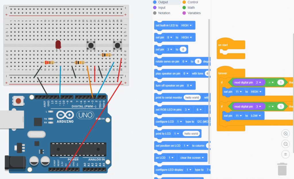 Bu çalışmada, iki buton kullanarak bir LED’i yakıp söndürmeyi öğreneceğiz.