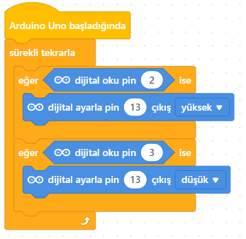 Artık LED’i yakmak için bir butona, söndürmek için diğerine basabiliyoruz!