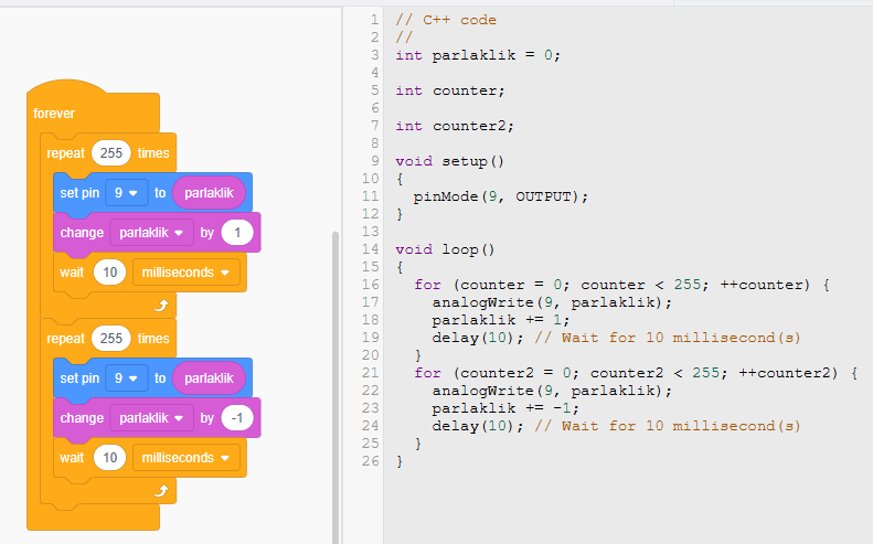 - Biz de bu miktarı yavaş yavaş artırıp azaltarak güzel bir ışık efekti oluşturduk.