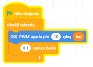 - LED’in uzun bacağını (artı ucu) 10 numaralı pine bağla (direnç ile).