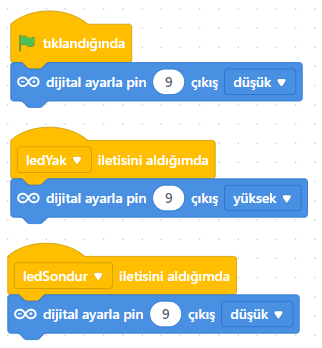 mBlock, çocukların kodlamayı öğrenmesi için tasarlanmış bir programdır. Hem sahnede kuklaları hareket ettirebilir, hem de Arduino ile gerçek devreleri çalıştırabiliriz.