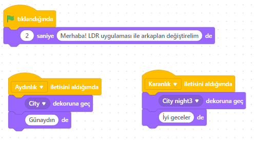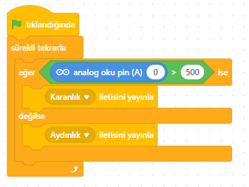 | Direnç | A0 ile GND arasına (LDR ile seri bağlanır) |