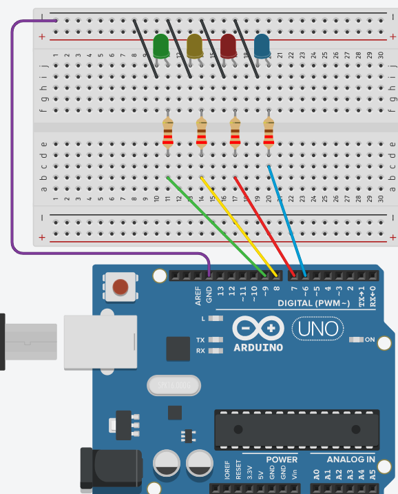 | LED | Arduino Pin | Direnç ve LED bağlantısı |