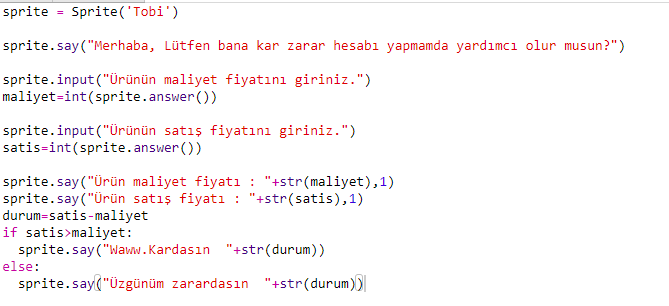 - Başlangıçta kullanıcıdan girdi alınması – maliyet fiyatı ve satış fiyatı.