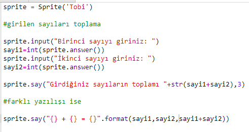 sprite.input(" 1. sayıyı giriniz") s1 = int(sprite.answer())