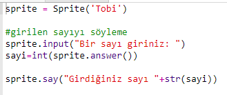 1. input() : Bu fonksiyon sprite’ın kullanıcıya soru sormasını sağlar.
