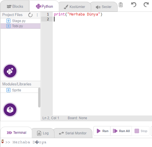 Python’da ilk programımızı oluşturalım. Bu programda terminale Merhaba Dünya yazdıracağız .